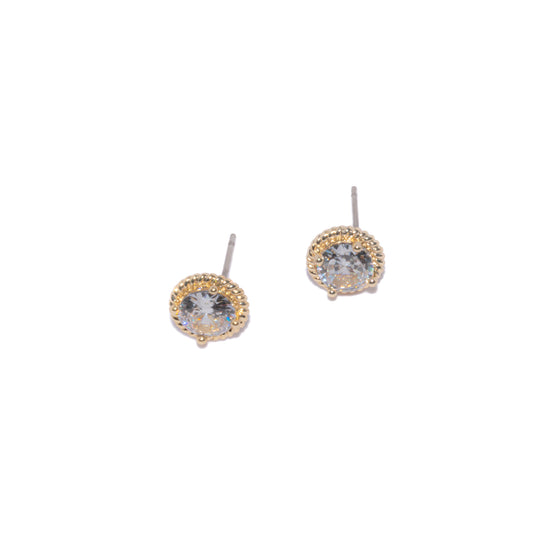 ARETE STUD CHICO LATÓN CON CHAPA DE ORO Y CIRCONIA CÚBICA.
