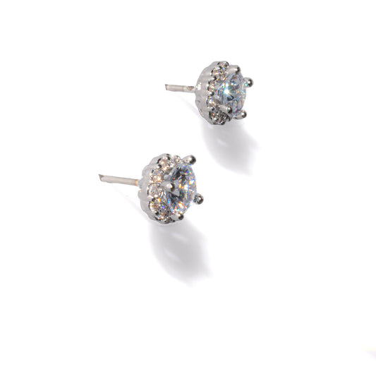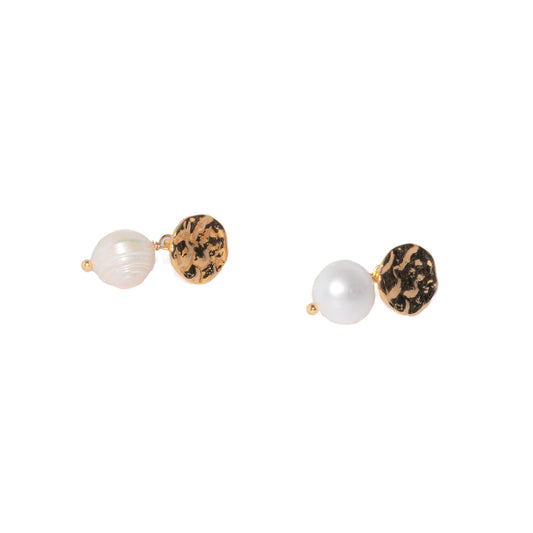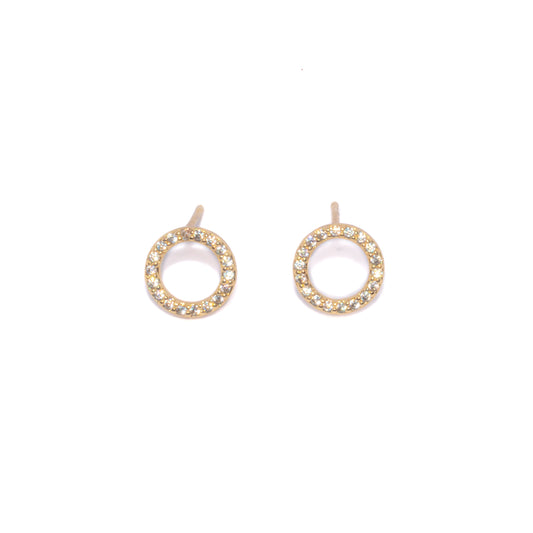 ARETE STUD CHICO LATÓN CON CHAPA DE ORO Y CIRCONIA CÚBICA.