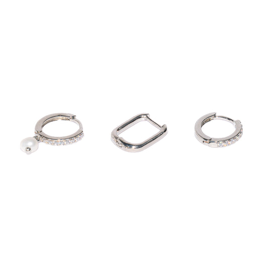 SET DE 3 HUGGIES PLATEADOS CON CIRCONIA.