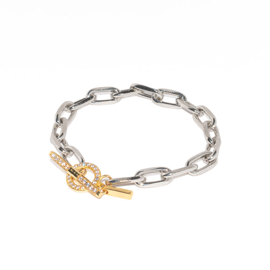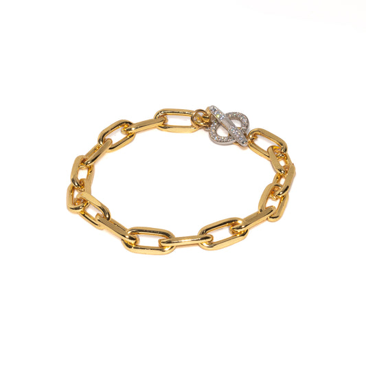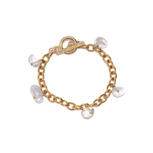 PULSERA DE ESLABONES DORADOS CON DIJES DE CUARZO REDONDO